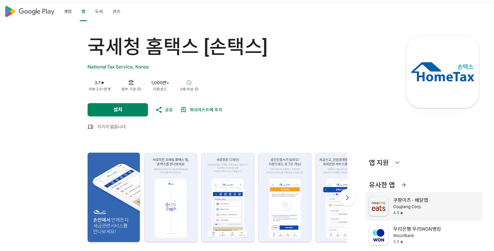 구글플레이 : https://play.google.com/store/apps/details?id=kr.go.nts.android&hl=ko